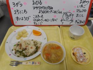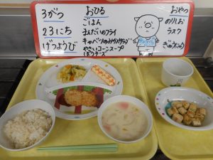 ついに このひが きてしまった みどりさん まいにちのきゅうしょくも たのしみのひとつでした きゅうしょくの せんせいがた ごちそうさまでした おいしかったで~す