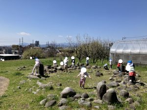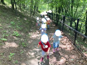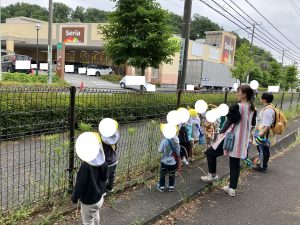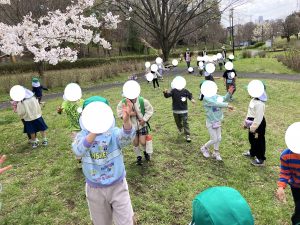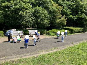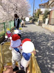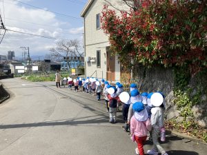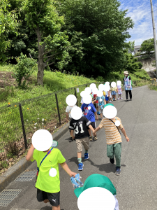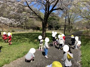 ひとあし おさきに せいかつはっぴょうかいを おえた ぶんえんのおともだち きょうは のんびり おさんぽです