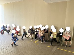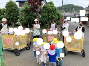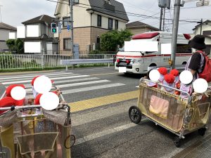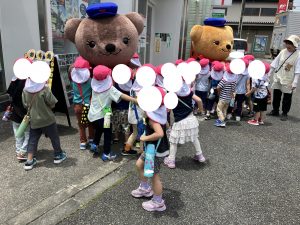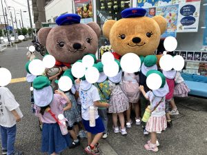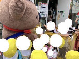 さんぽちゅうの きくみさん ぶんえんさんのまえをとおったら みんなが てを ふってくれました