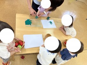 ぶんえんのおともだちは えをかいたり ブロックであそびました