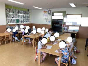 ももさん えをかいたあとは    はっぴょうかいの れんしゅうです