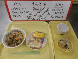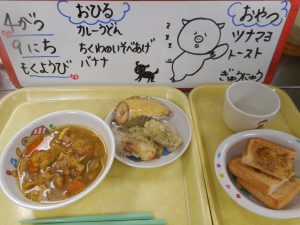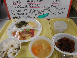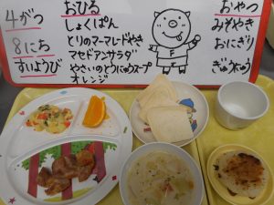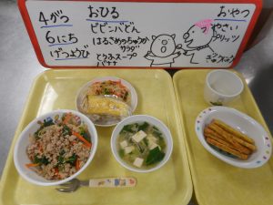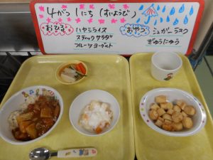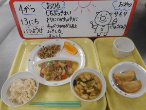 4月は ひよこさんの りにゅうしょくの とうじょうです