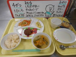 やさいも おにくも とれて えいようまんてんの メニューでした