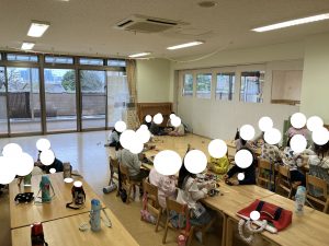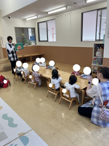 ぶんえんのおともだち しきがおわって あかさんは こんだんかいが おこなわれましたが そのあと おかえりになってしまったので きくみさん ひろくなったへやで あそびました