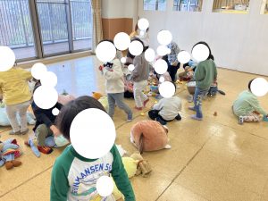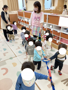 みどりさん ホールで あそびました フープをつかって・・・