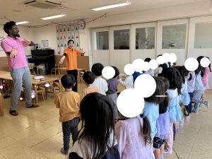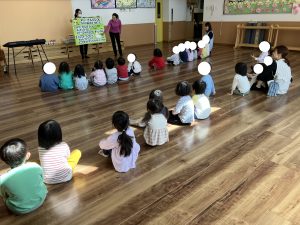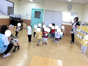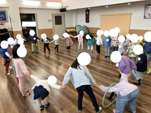 あおさん ひろばじぎょうで きてくださっている リトミックのせんせいのレッスンに さんかしました
