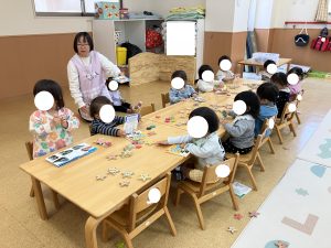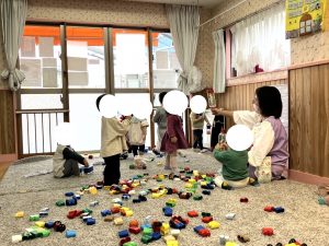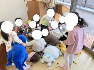 ぶんえんのおともだち ひとりあそびも じょうずです おなじ おもちゃでも あそびかたは それぞれに・・・