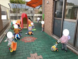 ぶんえんのおともだち テラスで あそびました