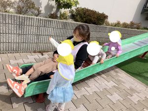 せんせいと いっしょに すべりだいで あそびました