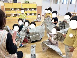 しんぶんであそびました