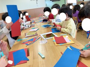 こいのぼりのせいさくちゅう