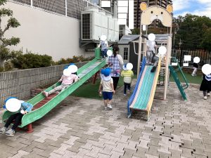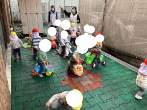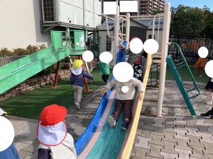 ぶんえんのおともだち そとで げんきに あそびます