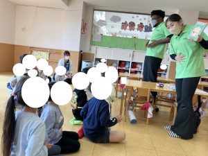 あおさん おねえさんせんせいが みんなのために ほんをよんでくれました
