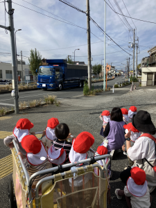 あかさん えんがいを おさんぽちゅう おにいさんせんせいも いっしょに きてくれました