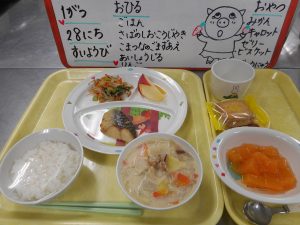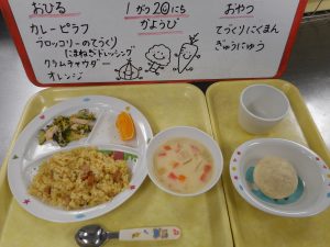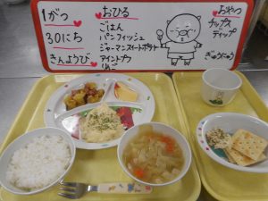 やさいいっぱい じゃがいも さつまいも たくさん つかった メニューでした
