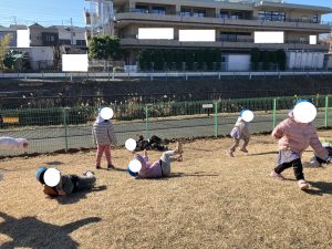 きくみさん こうえんで げんきに はしります