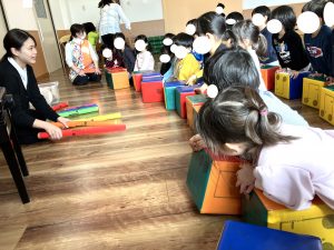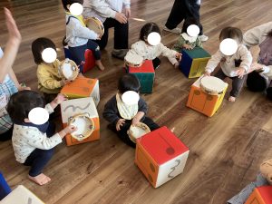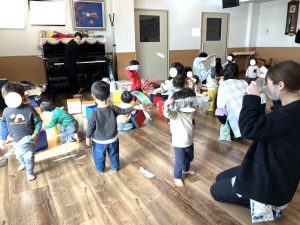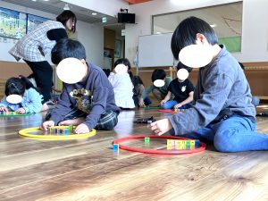ぶんえんのおともだち へやいちめんに あそびどうぐを ならべて たのしみました