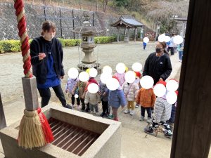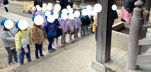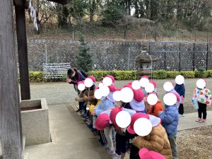 ぶんえんのおともだちも やってきました せんせいに おさいせんを いれていただき おまいりしま~す