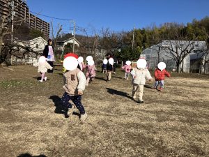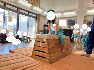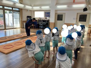 ももさん あるいたり はしったりのウォーミングアップから とびばこをこえたり からだを ならしました