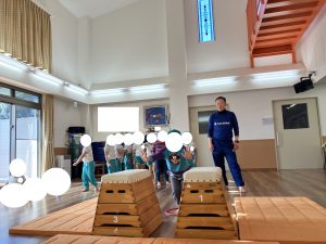 とびばこを たてにならべて はんたいがわへ いどうしたり たいりょくアップを はかりました