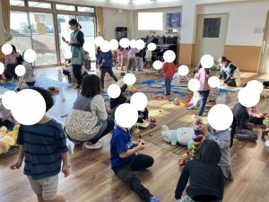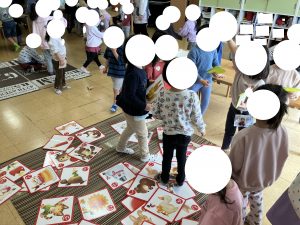 きょうは ハッピープレイデイ みんなで あそび おしょうがつあそびにも チャレンジしようというのが テーマ