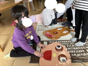 ここは ふくわらいのコーナー  ムム じょうずに できているでは ないか すごい すごい