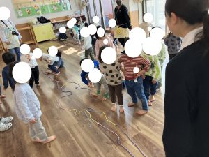 あおさん つなげた ひものうえを あるきます