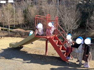 あおさん たばたしぜんこうえんで あそびました すべりだいが ちいさくみえます