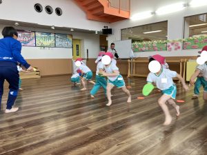 きょうも こうえんで かけっこする きくみさん あしが つよくなるね