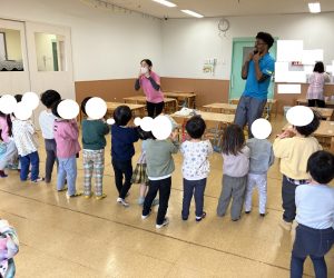 きょうは えいごのじかん あおさん スマ~イル スマ~イル げんきに さんか できました