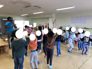 ももさん とんだり はねたりを からだで ひょうげんしながら たんごを れんしゅうしました