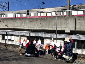 ふだつぎじんじゃまで でかけた ひよこさん みんなで でんしゃに てをふります
