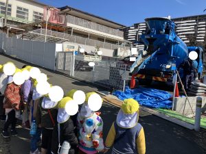 きくみさん えんがいの おさんぽに でかけようとしましたら ミキサーしゃが・・・しばし めをうばわれました