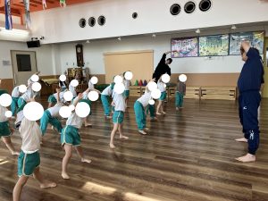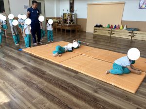 マットのうえを ころがるだけなのに いがいとむずかしいです