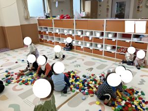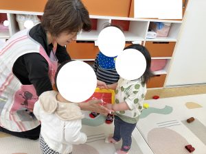 あかさんは みんなで なかよく あそびながら