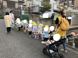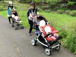 えんがいを おさんぽする ひよこさん ベビーカーのなかで ウトウト