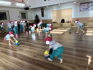 ボールをてで ころがしながら